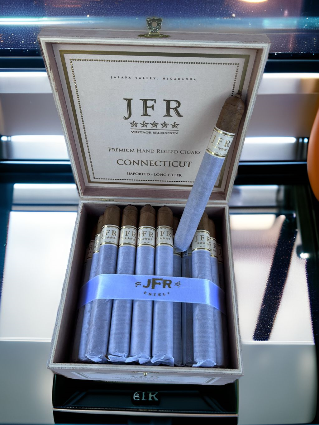 JFR Connecticut Super Toro is back with a revamped packaging and the same great taste as the original. Made by Casa Fernandez in Nicaragua, this cigar boasts a robust blend that surprises fans of typical Connecticut cigars. The new release features a luxurious cream-colored band and a tissue sleeve, with a silky Connecticut wrapper rolled perfectly over the cigar. The smoke is firm with an easy draw, offering bursts of spicy Nicaraguan pepper and a mix of cedar and cream. With a solid medium flavor profile, the Super Toro is a wonderful choice for any time of day, paired with coffee, wine, or bourbon. Versatile and satisfying, this cigar is worth trying for both avid fans and newcomers.