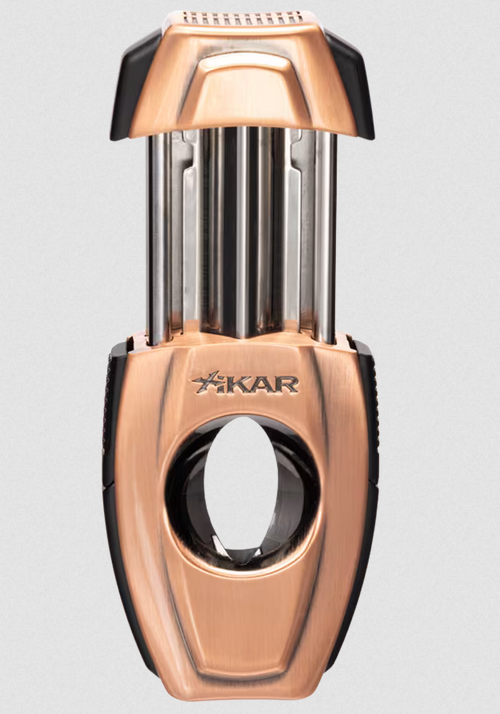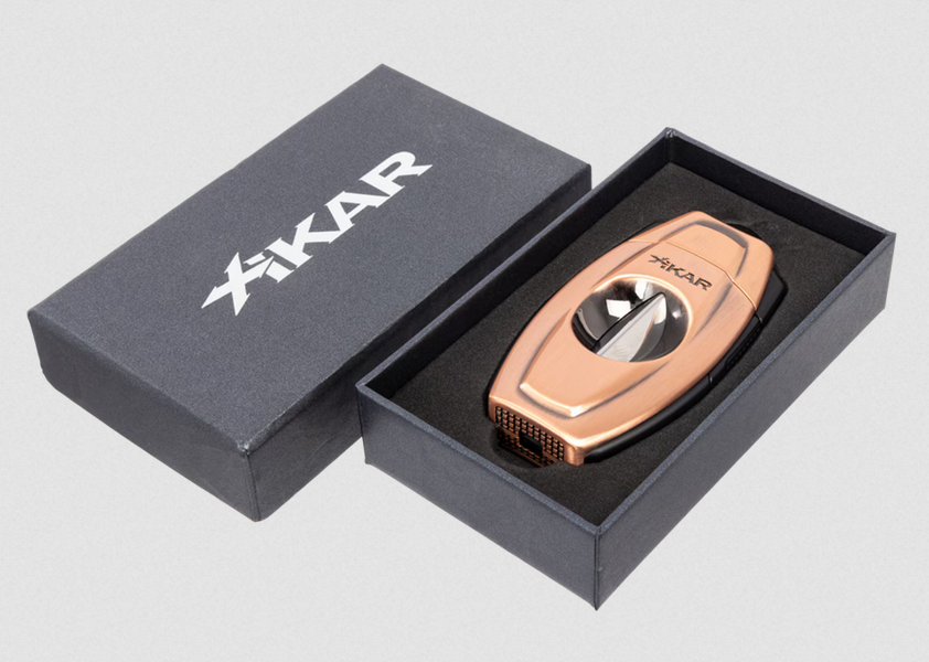 The cutter features the Secure-Lock system, a user-friendly spring-loaded release mechanism that enables one-handed operation for added convenience. By applying pressure to both sides and releasing the buttons, the XIKAR® Flip Dual Cutter is easily maneuvered with your thumb and index finger allowing cigar connoisseurs to seamlessly switch between a V-Cut or Straight Cut. Other highlights include the side trigger button complementing color finishes which add style, as well as the textured surface giving the cutter a luxurious feel and a firm grip.